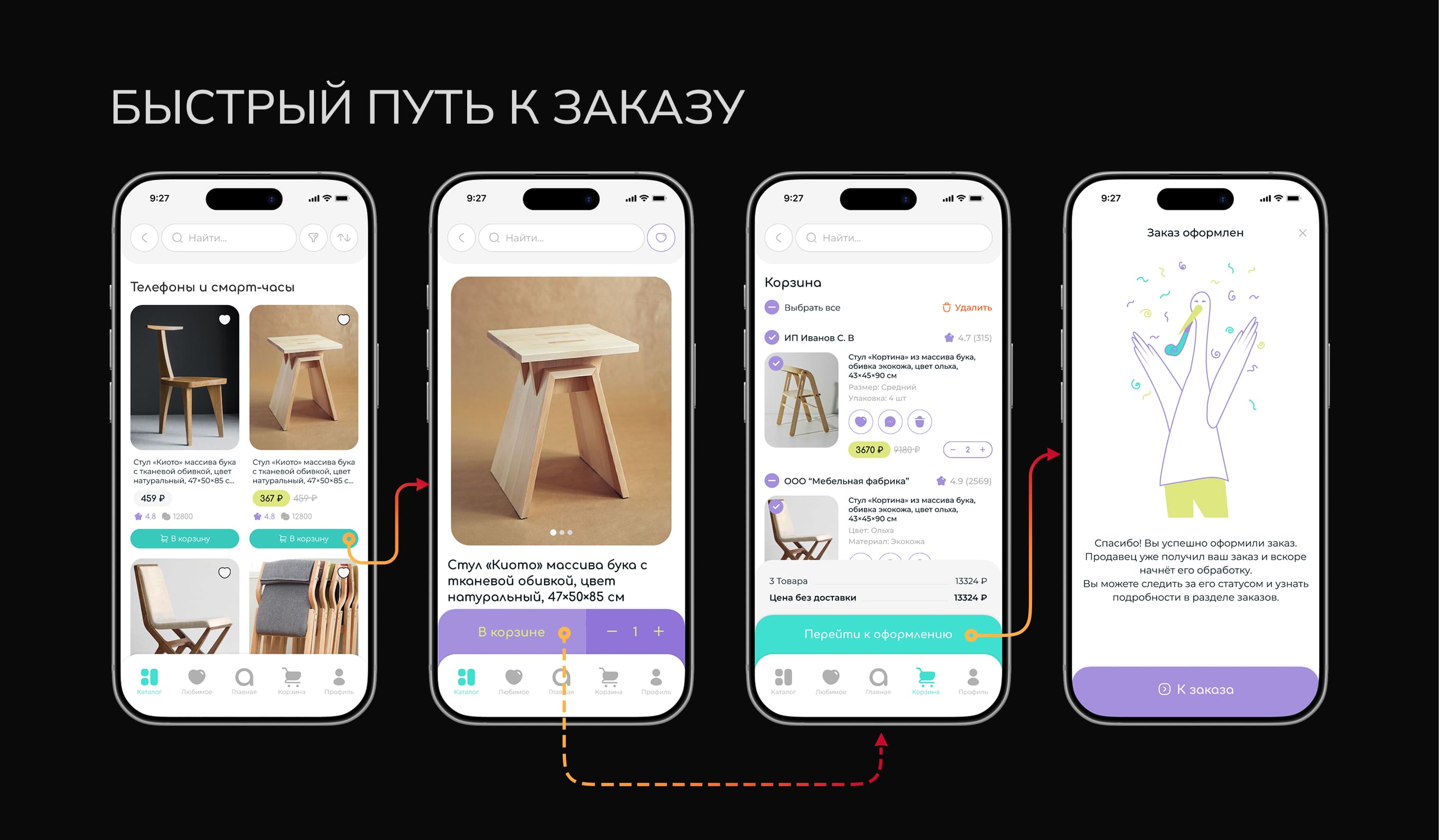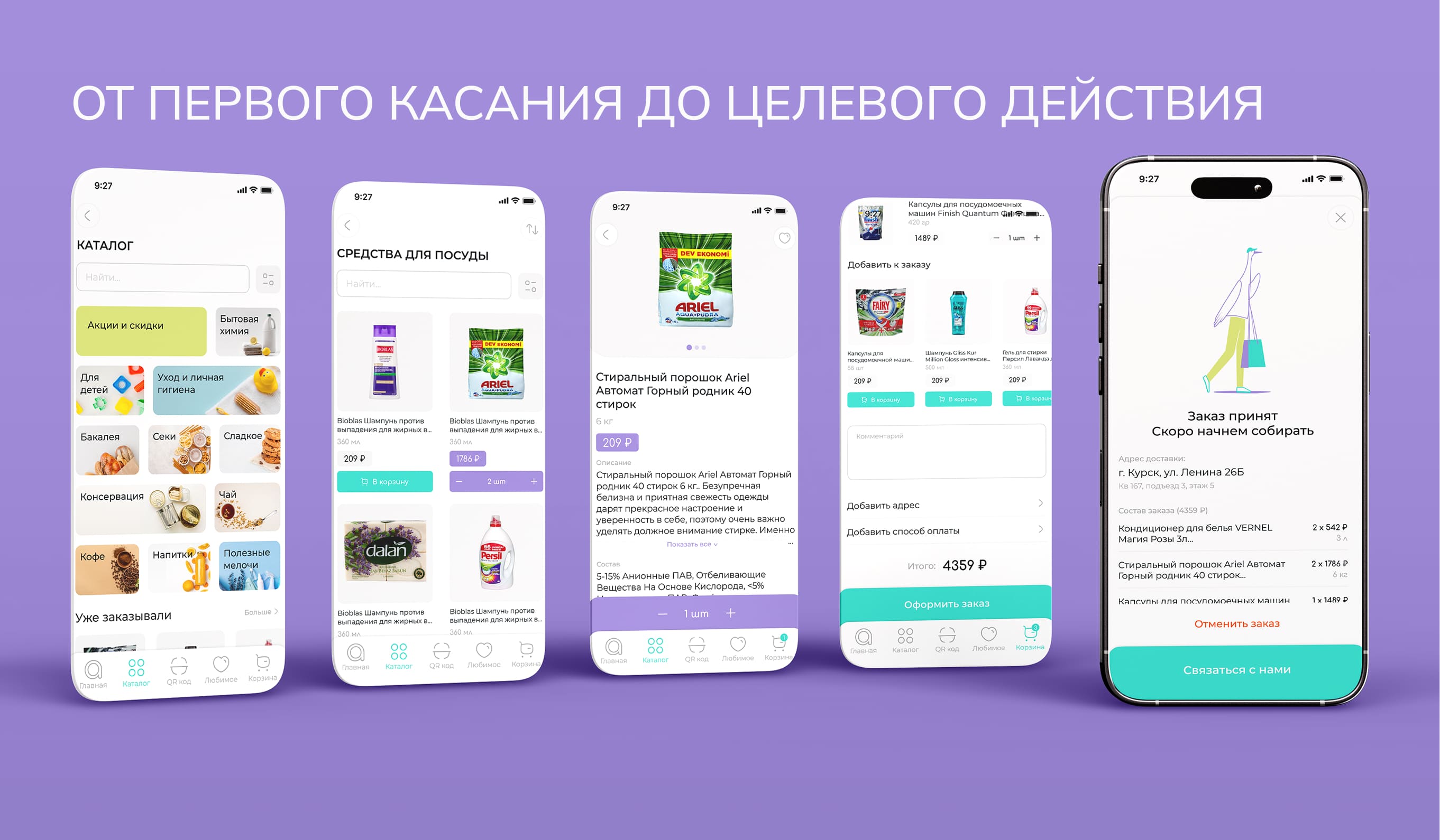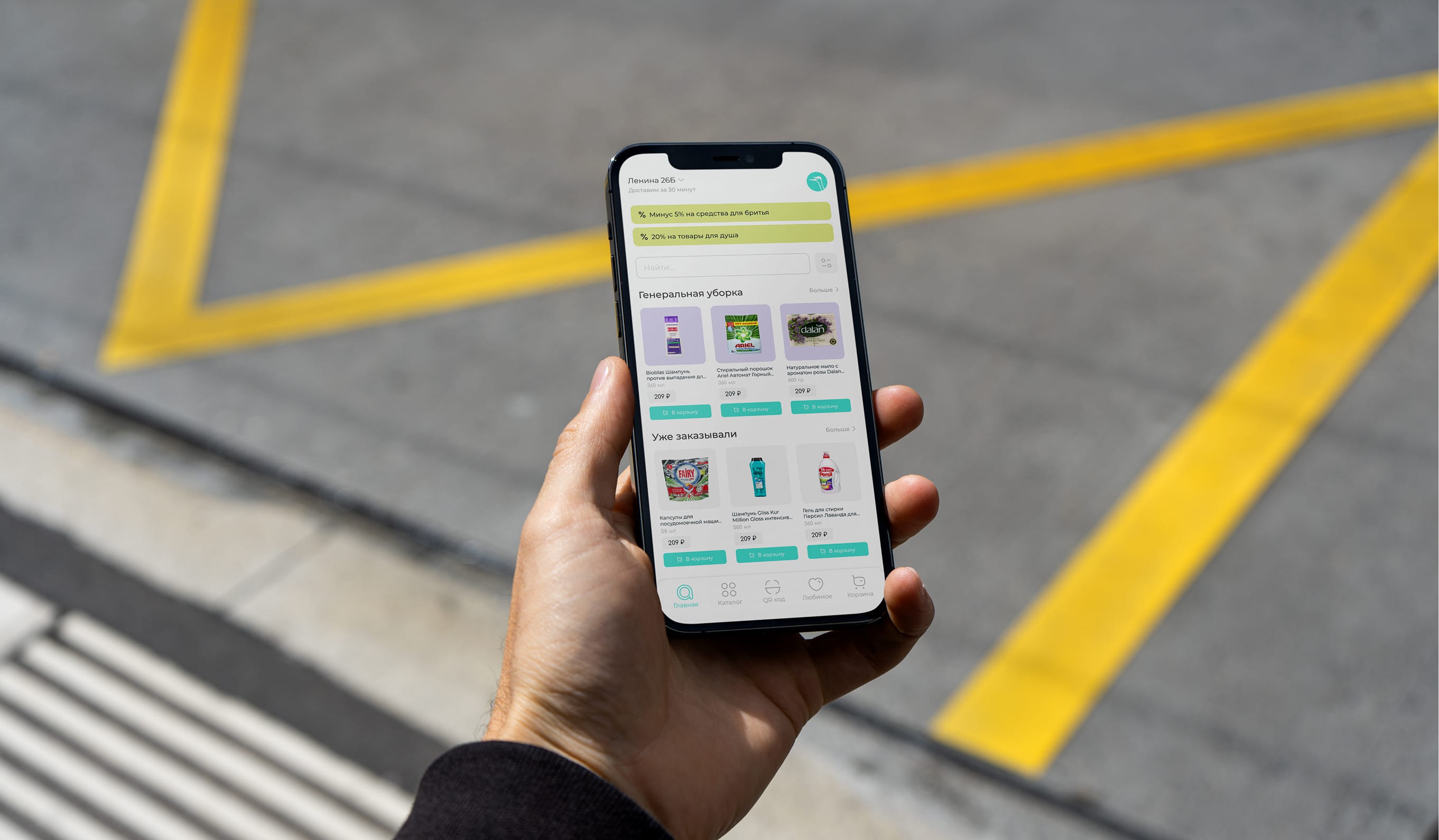 Интерфейс построен вокруг простоты: быстрые покупки, чистая визуальная система и логика, которая не даёт пользователю теряться.