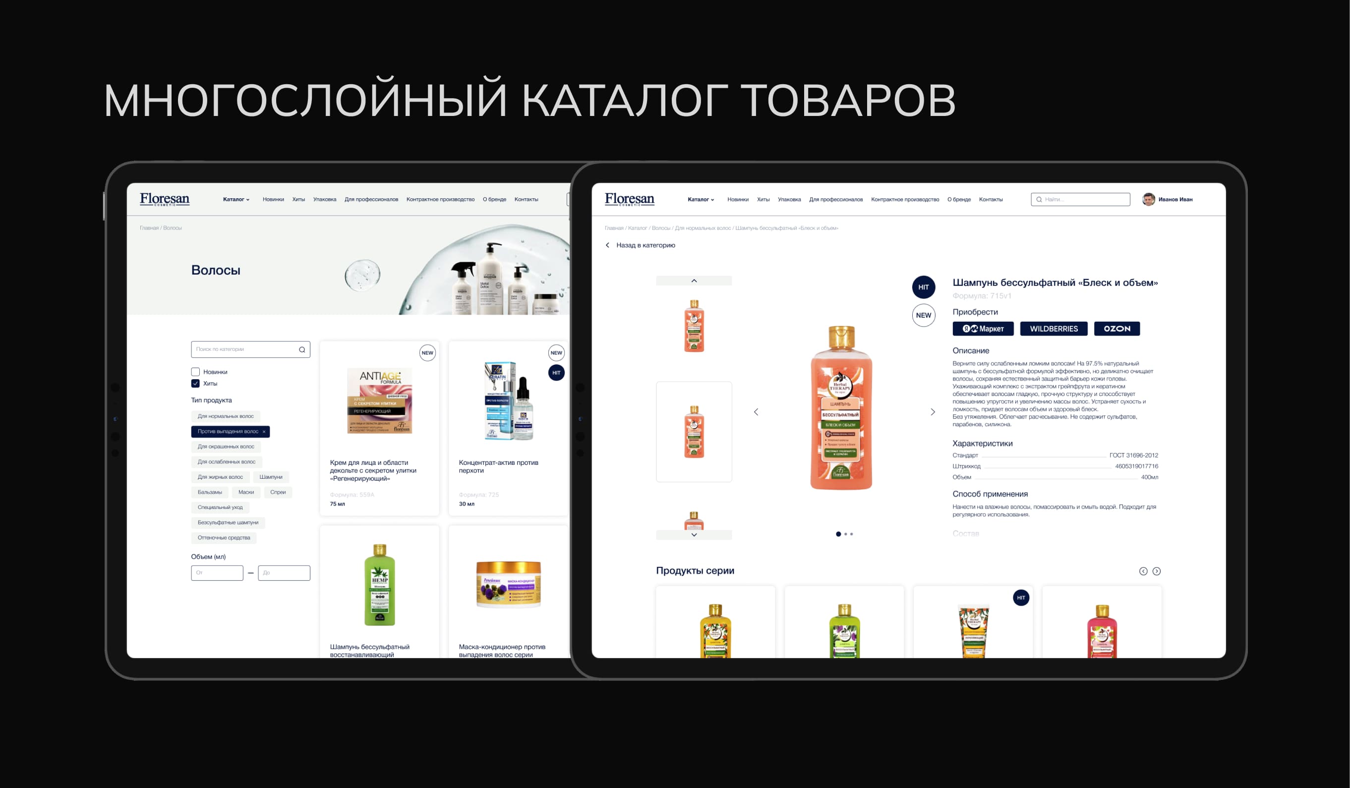 В основе — многоуровневая структура товаров, позволяющая удобно ориентироваться как в классических категориях, так и в сериях продукции бренда.