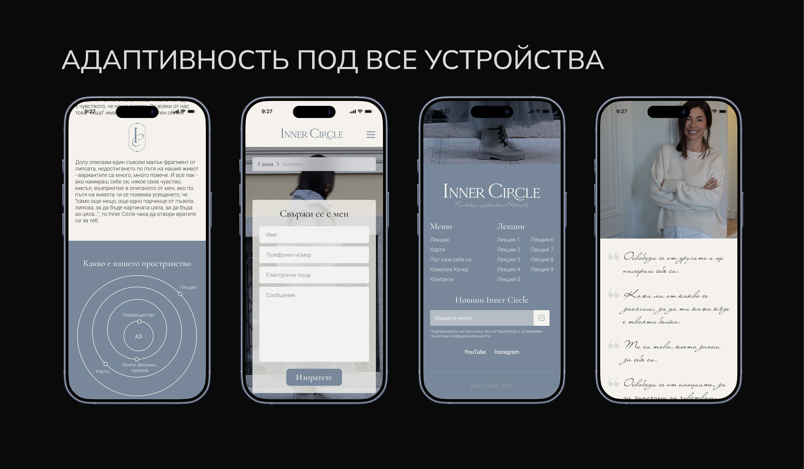 Подготовили мобильные макеты и единый визуальный язык, который отражает стиль автора: спокойствие, глубину и аккуратный минимализм.
